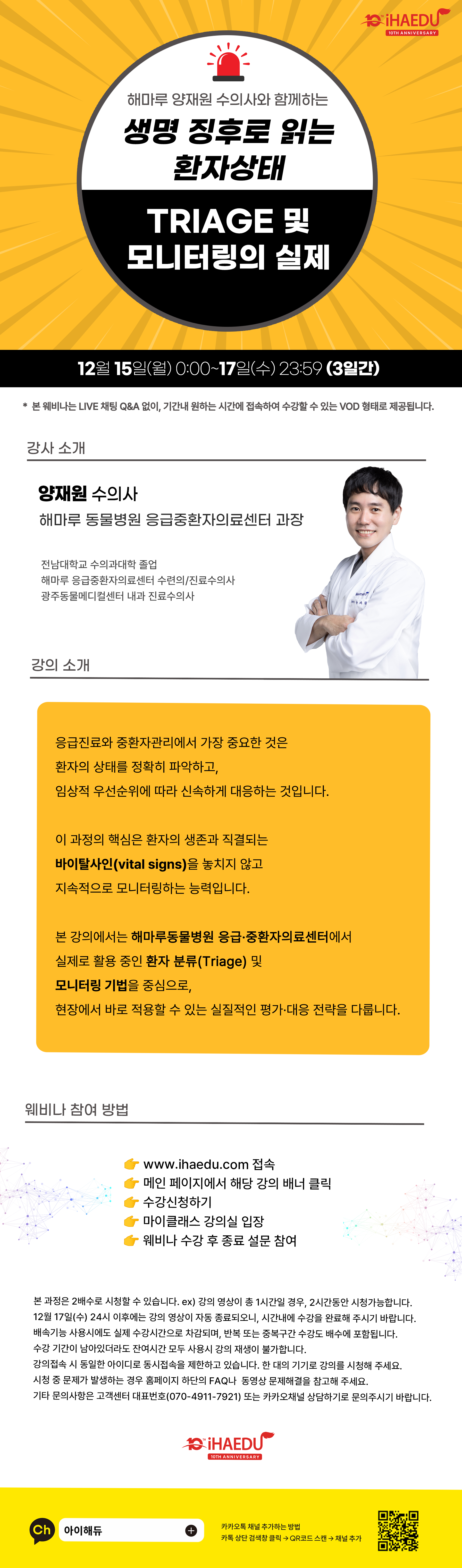 [응급의학과] 생명 징후로 읽는 환자상태 : TRIAGE 및 모니터링의 실제