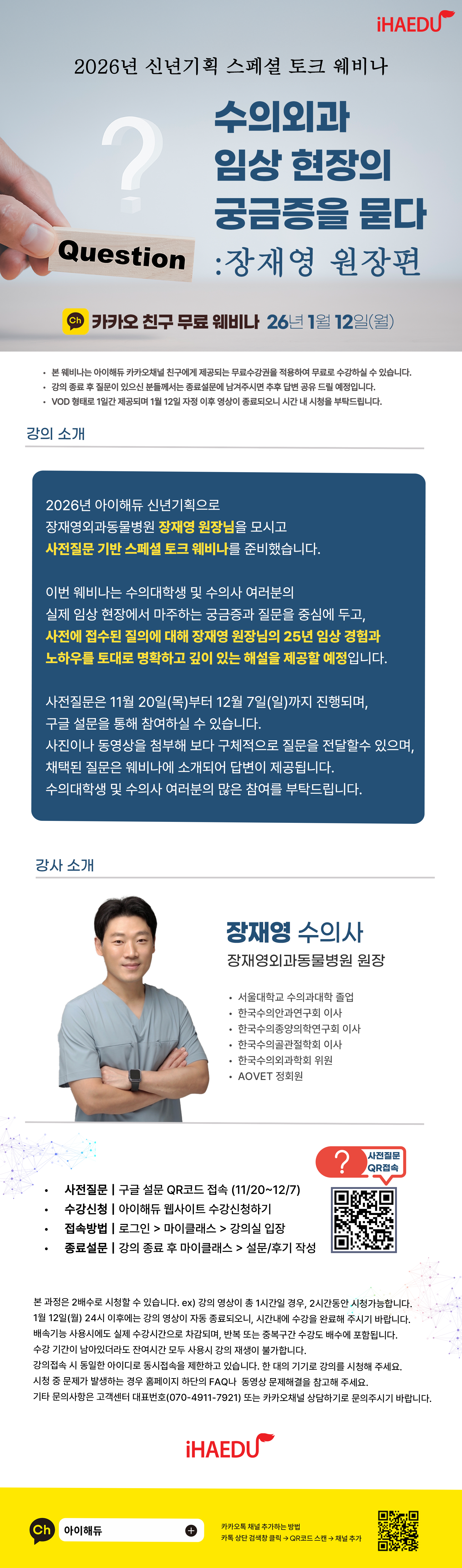수의외과 임상 현장에서 평소 궁금했던 내용에 대하여 장재영 원장님이 명쾌한 답변을 드립니다!