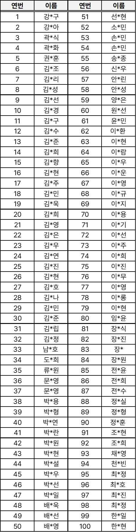 당첨자 명단 (가나다 순)